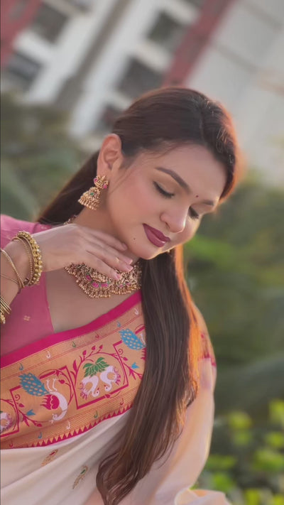 Pure White Zari Woven Paithani Saree 420750.0Rs. 4,207.50 1122000Rs. 11,220.00 62(62% OFF)